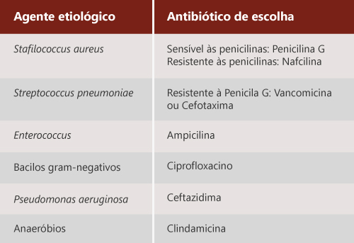 O quadro abaixo relaciona o agente etiológico com o antibiótico de escolha: