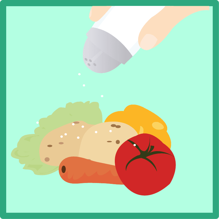 Evite consumir alimentos ricos em sal como embutidos (presunto, salame e salsicha), temperos prontos (caldos de carnes e de legumes) e alimentos industrializados (azeitonas, enlatados, chips, sopas e molhos prontos etc.). Prefira temperos naturais como alho e ervas aromáticas. Use pouco sal para cozinhar.