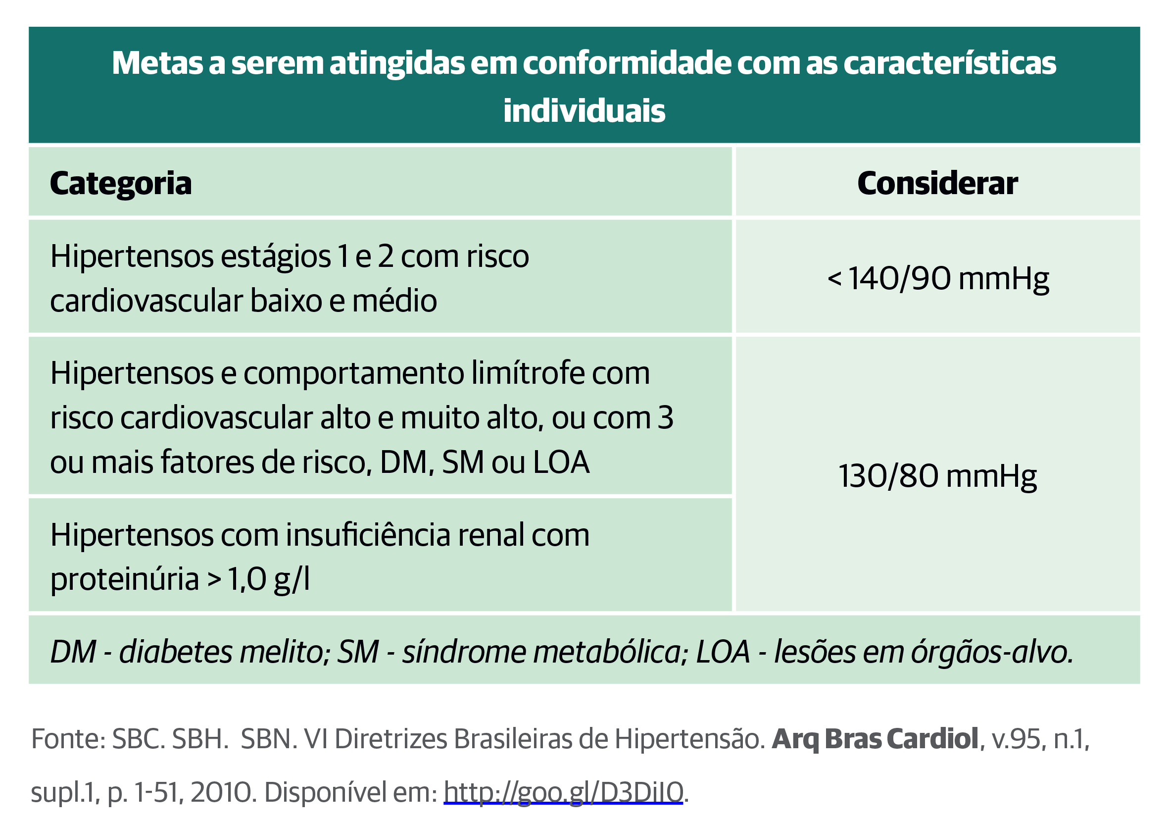 SOCIEDADE BRASILEIRA DE CARDIOLOGIA. Sociedade Brasileira de Hipertensão. Sociedade Brasileira de Nefrologia. VI Diretrizes Brasileiras de Hipertensão. Arq Bras Cardiol, v.95, n.1, supl.1, p. 1-51, 2010. Disponível em: http://publicacoes.cardiol.br/... Acesso em: 15 abr. 2014.