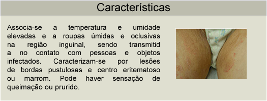 É uma dermatofitose causada pelos fungos das espécies Trichophyton, Microsporum e Epidermophyton, cuja lesão se localiza na virilha e pode afetar coxas, nádegas e abdome, sendo mais comum no sexo masculino.