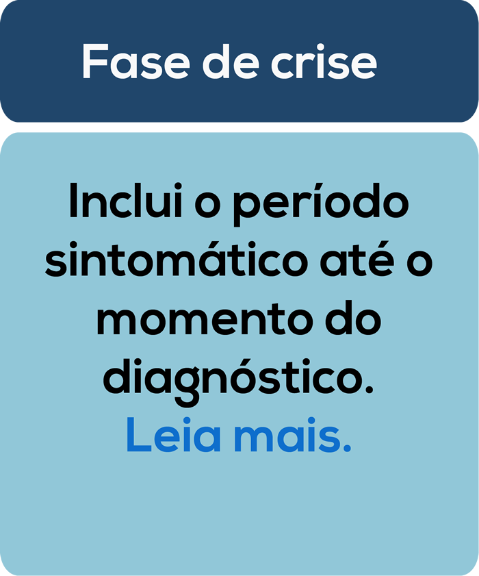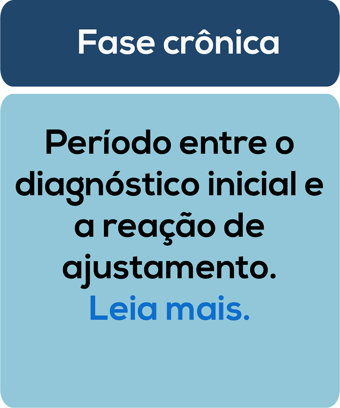 O autor supracitado distingue três fases psicossociais das doenças crônicas que podem ser identificadas e facilitar a compreensão das reações comportamentais do grupo familiar. Clique nas caixas de texto abaixo: