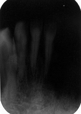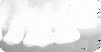 Acontece quando o tempo de exposição é aquém do tempo recomendado para determinada região e paciente, causando uma imagem pouco densa (clara), podendo acontecer frequentemente quando os aparelhos não estão devidamente calibrados. Observe na imagem o aspecto radiográfico do erro por subexposição (clique na imagem para ampliar).