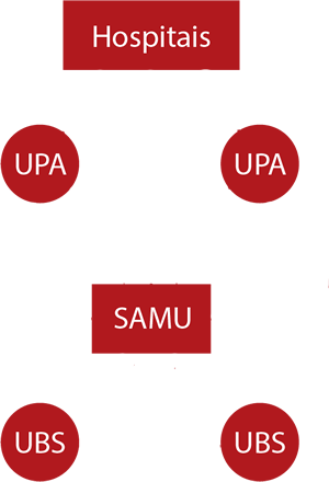 Abaixo você pode observar um fluxograma de referenciamento dos fluxos assistenciais nas condições de urgências e emergências, todo gerenciado por uma central de regulação e a organização em redes poliárquicas: