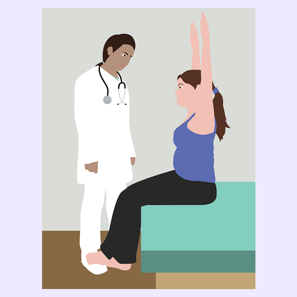 Inspeção estática: Observar a paciente sentada e com os membros superiores pendentes, verificar a simetria, abaulamentos, afundamentos e integridade da pele.
