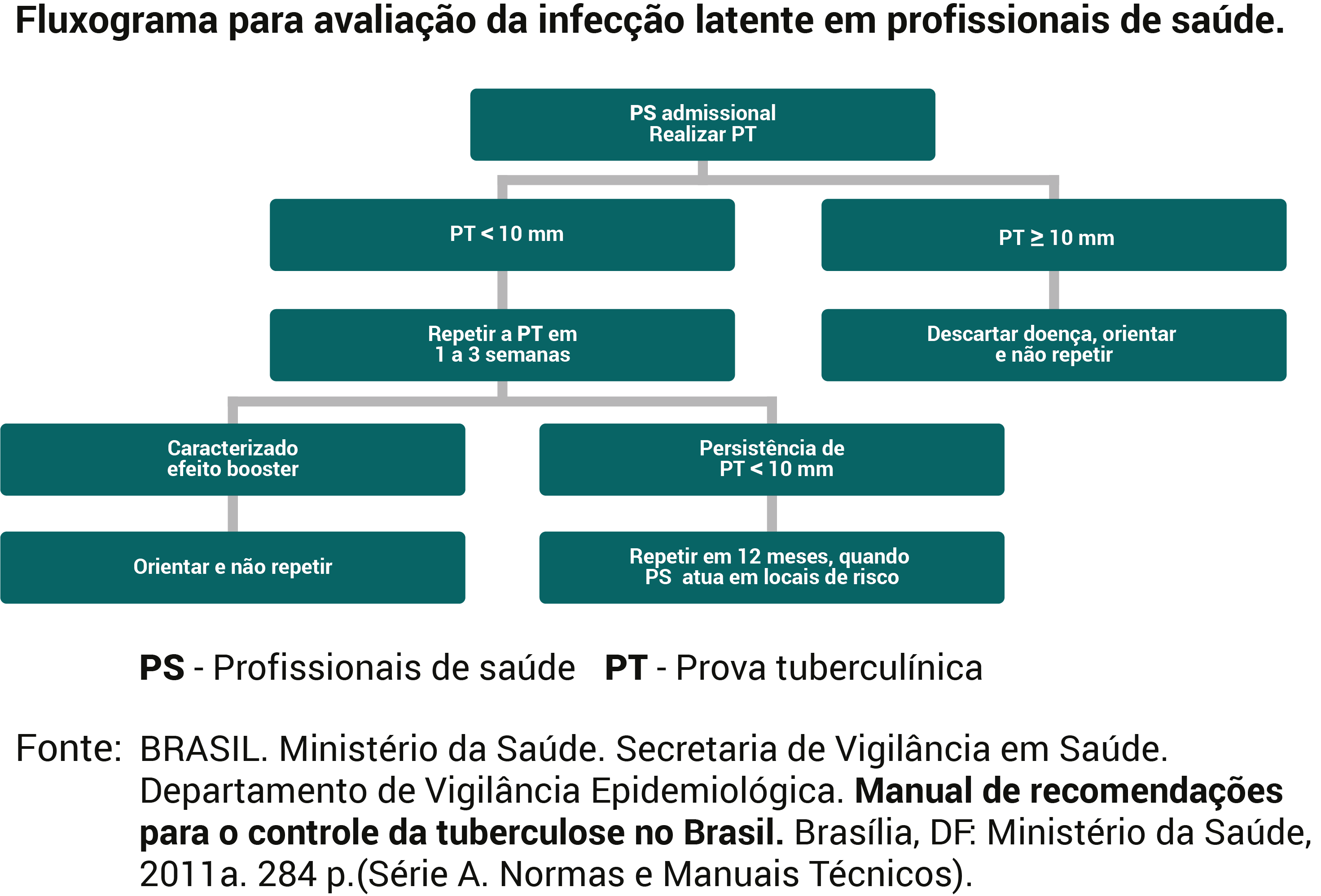 O efeito booster representa a reativação da resposta tuberculínica pelas células de memória (BCG ou infecção remota por M. tb) presente em cerca de 6% dos profissionais de saúde. Esse efeito é definido quando a segunda PT é ≥ 10 mm, com incremento de pelo menos 6 mm em relação à primeira PT. Nesses indivíduos, não há indicação de tratamento da ILTB, pois o risco de adoecimento é muito baixo. Essa 2ª aplicação da tuberculina é utilizada apenas para excluir uma falsa conversão, no futuro, em indivíduos testados de forma seriada. Se o resultado da 2ª aplicação for ≥ 10 mm, mesmo sem incremento de 6 mm em relação à 1ª, a PT não deve ser repetida futuramente (BRASIL, 2011).