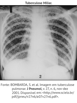 Clique nos números abaixo e observe as imagens radiológicas referentes a pneumonia TB, TB miliar e derrame pleural.